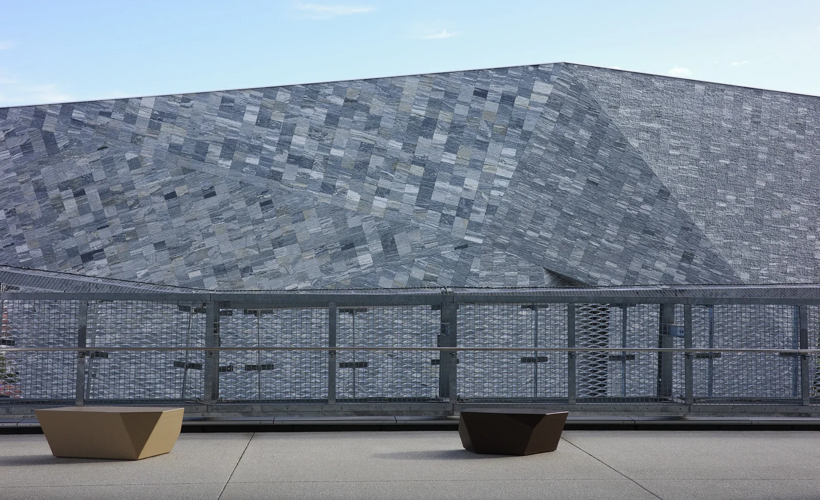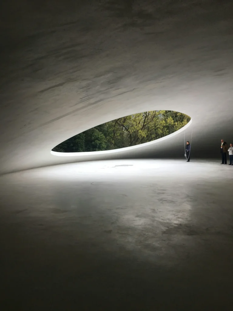 Bold use of concrete, light, and minimalist geometric forms that highlight the interplay between art, architecture, and nature.